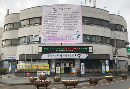 ÇàÁ¤º¹Áö¼¾ÅÍ ¿Üº®¿¡ °É¸° Çö¼ö¸·¿¡´Â Äڷγª19 Àå±âÈ¿¡ µû¸¥ ¾î·Á¿ò ¼Ó¿¡¼µµ µ¿¹Î ÈÇÕÀ» ÅëÇØ Àϱų½ °¢Á¾ ¼º°ú ¸ñ·Ï°ú ¿ÃÇØ ÁÖ¿ä »ç¾÷À» ´ã¾Ò´Ù.
