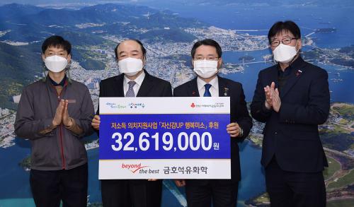 ±ÝÈ£¼®À¯ÈÇÐ ¼Û¼®±Ù ºÎ»çÀåÀÌ 19ÀÏ ¿©¼ö½Ãû ½ÃÀå½ÇÀ» ¹æ¹®ÇØ Á÷¿øµéÀÌ ±Þ¿©ÀÇ ÀÏÁ¤±Ý¾×À» ½Ê½ÃÀÏ¹Ý ¸ðÀ¸°í ȸ»ç°¡ 1:1·Î ¸ÅĪÇÑ ¸ð±Ý¾× 32,619õ ¿øÀ» ±Ç¿ÀºÀ ¿©¼ö½ÃÀå¿¡°Ô Àü´ÞÇß´Ù.