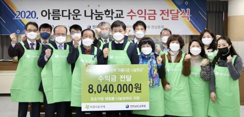 ¾Æ¸§´Ù¿î°¡°Ô Àü³²º»ºÎ´Â Áö³ÇØ ±¤¾ç¡¤¼øÃµ¡¤¿©¼ö Áö¿ª 14°³ Çб³, ¼øÃµ¡¤¿©¼ö ±³À°Áö¿øÃ»°ú ÇÔ²² ³ª´®Çб³¸¦ ¿î¿µÇßÀ¸¸ç ±âÁõ ¹°Ç° ÆÇ¸Å ¼öÀÍ±Ý 804¸¸ 4,000¿øÀ» À̳¯ Àü³²±³À°Ã»¿¡ ±âºÎÇÑ °ÍÀÌ´Ù. ÀÌ ±âºÎ±ÝÀº Àü³² Áö¿ª Ãë¾à°èÃþ Çлýµé°ú µ¶°Å³ëÀεéÀ» À§ÇØ »ç¿ëµÉ ¿¹Á¤ÀÌ´Ù.