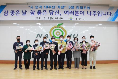³ªÁÖ½Ã(½ÃÀå °ÀαÔ)´Â 3ÀÏ Ã»»ç ´ëȸÀǽǿ¡¼ ¿¸° 5¿ù Á¤·ÊÁ¶È¸ ÀÚ¸®¸¦ ÅëÇØ ¡®3´ë È¿»ç¶û ¸ð¹ü°¡Á¤¡¯, ¡®¸ð¹üÈ¿ÇàÀÚ¡¯, ¡®ÀåÇѾî¹öÀÌ¡¯ 3°³ ºÐ¾ß È¿Çà½Çõ À¯°øÀÚ 22¸í¿¡°Ô ǥâÀåÀ» Àü´ÞÇß´Ù°í ¹àÇû´Ù.