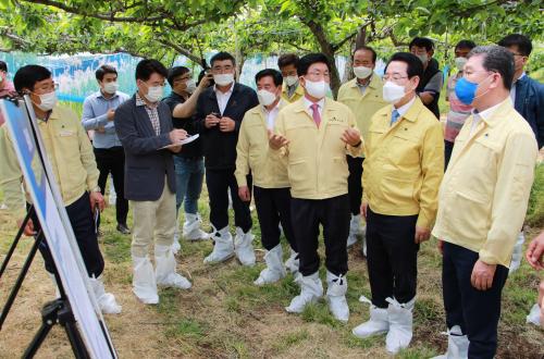 À̳¯ ±Ýõ¸é ¿ù»ê¸® ¼ÒÀç ¹è ³ó°¡ Àú¿ÂÇÇÇØ ÇöÀå¿¡´Â ±è¿µ·Ï µµÁö»ç, °ÀÎ±Ô ½ÃÀå, ½ÅÁ¤ÈÆ ±¹È¸ÀÇ¿ø, À̹ÎÁØ¡¤ÃÖ¸í¼ö µµÀÇ¿ø, Á¤Âù±Õ ³ªÁֺνÃÀå, ¹Ú³»Ãá ³óÇù³ªÁÖ½ÃÁöºÎÀå°ú ³ó°¡ÁÖ µî 20¿©¸íÀÌ Âü¼®Çß´Ù.