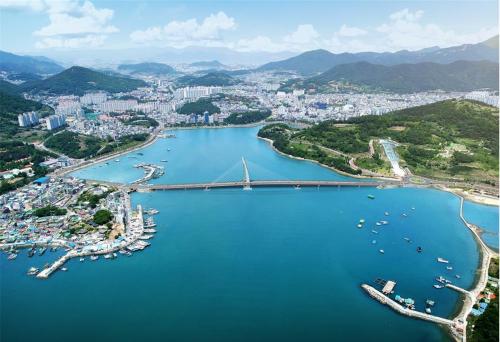 ¿©¼ö½Ã´Â »çÀå±³ 220m, PSC °Å´õ±³ 330m¸¦ °Ç¼³ÇØ ¿õõ ¿¹¿ï¸¶·ç¿Í ¼ÒÈ£ Ȳȣ¸¶À»À» ¿¬°áÇϰí ÀÖ´Ù. ±æÀÌ´Â ÃÑ 1õ154mÀÇ ¿Õº¹ 4Â÷·Î·Î, ÇØ»ó±³·®ÀÌ ÃÑ 550mÀ̸ç ÁøÀÔµµ·Î°¡ 604m¿¡ À̸¥´Ù.