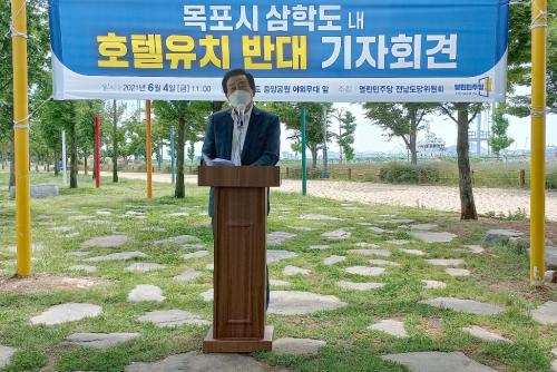 ¹Ú À§¿øÀåÀº 4ÀÏ »ïÇеµ °ø¿ø¿¡¼ ¡®»ïÇеµ Ư±Þ È£ÅÚ À¯Ä¡ ÃßÁø¿¡ ´ëÇÑ °üÇÑ ÀÔÀå¹® ¹ßÇ¥¡¯±âÀÚȸ°ßÀ» ÅëÇØ ¡°»ïÇеµ¿¡ ¹ÎÀÚ 5¼º±Þ ÀÌ»óÀÇ °ü±¤È£ÅÚ À¯Ä¡¸¦ ÃßÁøÇϰí ÀÖ´Â °Í¿¡ ¹Ý´ë ÀÔÀåÀ» ¹àÈù´Ù¡±°í °ø½Ä Ç¥¸íÇß´Ù.