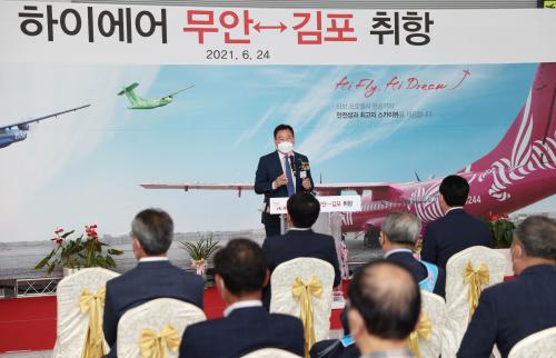 ±è»ê ±º¼ö´Â ¡°À̹ø ±èÆ÷ ³ë¼± ÃëÇ×À¸·Î Àü³² ¼³²±Ç ÁֹεéÀÌ ¼öµµ±Ç¿¡ Æí¸®ÇÏ°Ô °¥ ¼ö ÀÖÀ» °ÍÀ¸·Î ±â´ëµÈ´Ù¡±¸ç¡°¾ÕÀ¸·Î Á¦ÁÖ ³ë¼±µµ Ãß°¡ ¿îÇ×ÇÒ ¿¹Á¤À̹ǷΠÁö¿ª°æÁ¦ Ȱ¼ºÈ¸¦ À§ÇÑ °øÇ× À̿뿡 Àû±Ø µ¿ÂüÇØ ÁÖ½Ã±æ ¹Ù¶õ´Ù¡±°í ´çºÎÇß´Ù.