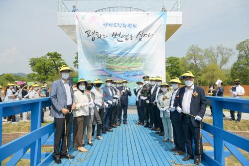 ÆòÈÁ¤¿ø °³Àå½Ä¿¡¼´Â ¿©¼øÇ×Àï À¯Á·È¸ µîÀÌ Âü¼®ÇÑ °¡¿îµ¥ ÇÕµ¿ ±â³ä»ç¿Í ÆòÈ¿¡ ´ëÇÑ Çâ±â°¡ ³Î¸® ÆÛÁö±æ ¹Ù¶ó´Â Àº¸ñ¼¸¦ ½ÄÀçÇß´Ù. ¶Ç, ÆòÈÀÇ ¿°¿øÀ» ´ã¾Æ Á¾ÀÌ ºñÇà±â¸¦ ÇÑ ¸¶À½À¸·Î ³¯·È´Ù.
