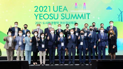 À̳¯ Æóȸ½Ä¿¡¼ ±Ç¿ÀºÀ ¿©¼ö½ÃÀå°ú À±¿øÅ UEA »ç¹«ÃÑÀåÀº Á¤»óȸÀÇ Âü°¡ÀÚµéÀÇ ¸ñ¼Ò¸®¸¦ ´ãÀº ¡®2021 UEA ¿©¼ö¼±¾ð¹®¡¯ µîÀ» äÅÃÇÏ°í ¡®¿©¼ö¼±¾ð¹®¡¯À» ÈûÂ÷°Ô ³¶µ¶Çß´Ù.
