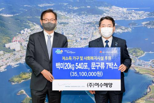¢ß¿©¼öÇØ¾ç Á¤ÀÎÇö ȸÀåÀº 22ÀÏ ¿©¼ö½ÃûÀ» ¹æ¹®ÇØ ¹é¹Ì¿Í ¹®±¸·ù 3õ510¸¸ ¿øÀÇ ÈÄ¿ø¹°Ç°À» ±Ç¿ÀºÀ ¿©¼ö½ÃÀå¿¡°Ô Àü´ÞÇß´Ù.