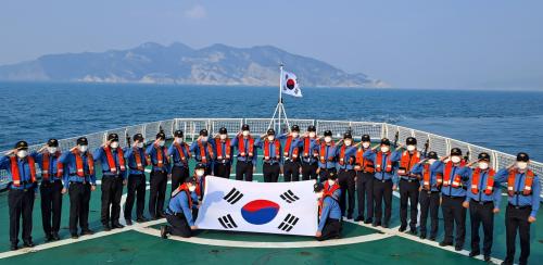 Á¦103Áֳ⠻ïÀÏÀýÀ» ¸Â¾Æ ¾Ö±¹½ÉÀ» °íÃëÇϰí ÇØ¾çÁÖ±Ç ¼öÈ£ ÀÇÁö¸¦ ´ÙÁö±â À§ÇØ ¸ñÆ÷ÇØ¾ç°æÂû¼ 1508ÇÔ ½ÂÁ¶¿øµéÀÌ ¿ì¸®³ª¶ó 23°³ ¿µÇرâÁ¡ Áß ÇϳªÀÎ Àü³² ½Å¾È±º È«µµ ¾Õ ÇØ»ó¿¡¼ ÅÂ±Ø±â ÆÛÆ÷¸Õ½º¸¦ ÆîÄ¡°í ÀÖ´Ù.
