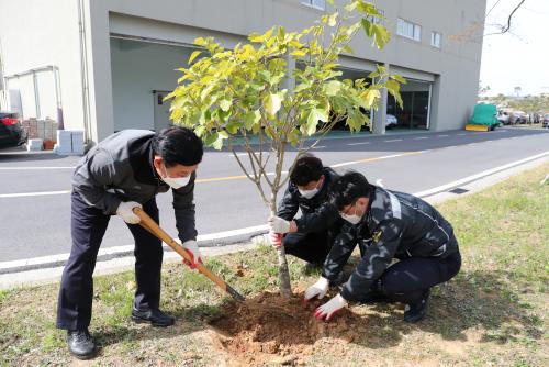¼ÇØÁö¹æÇØ¾ç°æÂûû ¼Ò¼Ó Á÷¿øµéÀÌ 5ÀÏ Ã»»ç¿¡¼ Á¦77ȸ ½Ä¸ñÀÏ ±â³ä ¾Æ¸§´Ù¿î °æ°ü Á¶¼º Çà»ç¸¦ Çϰí ÀÖ´Ù.