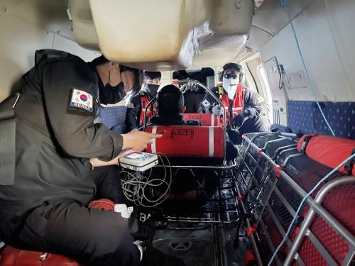 ¼ÇØÇذæÃ»Àº ÀÀ±ÞȯÀÚ°¡ ¹ß»ýÇß´Ù´Â ³²ÇØÁö¹æÇØ¾ç°æÂûû ¼Ò¼Ó Åë¿µÇØ¾ç°æÂû¼ÀÇ ½Å°í¸¦ ¹Þ°í Áï½Ã ¿©¼öÇ×°ø´ë Ç×°ø±â¸¦ ±ÞÆÄÇß´Ù.