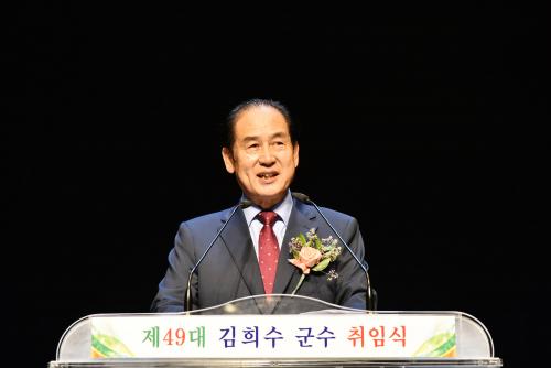 ±èÈñ¼ö ±º¼ö´Â ÃëÀӻ縦 ÅëÇØ ±º¹Î°ú Çϳª µÈ ¸¶À½À¸·Î ¡®´ÙÇÔ²² Àß»ç´Â »ê¾÷¡¯, ¡®¸ðµÎ°¡ ÇູÇÑ º¹Áö¡¯, ¡®ÀÎÀ縦 Ű¿ì´Â ±³À°¡¯, ¡®Ã£¾Æ¼ ¸Ó¹«´Â °ü±¤¡¯, ¡®±º¹ÎÀ» ¼¶±â´Â ÇàÁ¤¡¯À̶ó´Â 5´ë ±ºÁ¤ ¹æÄ§À» ¹ßÇ¥Çß´Ù.