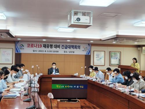 À̳¯ ȸÀÇ´Â ÃÖ±Ù ´ÙÁßÀÌ¿ë½Ã¼³À» ÀÌ¿ëÇÑ ¾î¸£½ÅµéÀÇ Äڷγª19 È®ÁøÀÌ Áõ°¡ÇÔ¿¡ µû¶ó °ü·Ã ½Ç°ú¼Ò ¹× 11°³ À¾¸é Ãѹ«ÆÀÀåÀ» ¼ÒÁýÇÏ¿© ¸¶À» ³» Áý´Ü°¨¿° ¹ß»ý ½Ã ´ëÀÀ ¹æ¾È¿¡ ´ëÇØ ³íÀÇÇß´Ù.