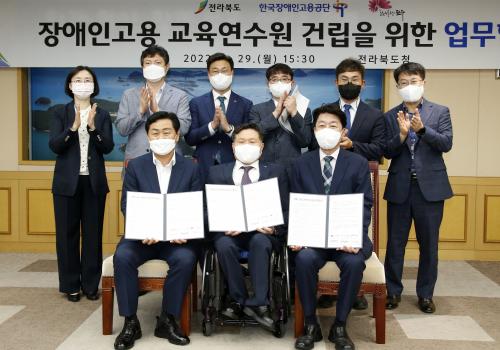 ÀüÁÖ½Ã¿Í Àü¶óºÏµµ, Çѱ¹Àå¾ÖÀΰí¿ë°ø´ÜÀº 29ÀÏ ÀüºÏµµÃ» Á¢°ß½Ç¿¡¼ ¿ì¹ü±â ÀüÁÖ½ÃÀå°ú ±è°ü¿µ Àü¶óºÏµµÁö»ç, Á¶ÇâÇö Çѱ¹Àå¾ÖÀΰí¿ë°ø´Ü ÀÌ»çÀå µîÀÌ Âü¼®ÇÑ °¡¿îµ¥ Àå¾ÖÀΰí¿ë ±³À°¿¬¼ö¿ø °Ç¸³»ç¾÷ÀÇ ¿øÈ°ÇÑ ÃßÁøÀ» À§ÇÑ ¾÷¹«Çù¾àÀ» ü°áÇß´Ù.