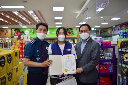 ÀÌ °æº¸¹®ÀÚ¸¦ º» Á÷ÈÄ Ä¡¸Å³ëÀÎÀ» ¹ß°ßÇÏ°í ½Å°í¸¦ ÇØÁØ ¹«¾È±º ³» ¸¶Æ®¿¡ Á¾»çÇÏ´Â Á÷¿ø ¡Û¡Û¡ÛÀÌ 112½Å°í¸¦ ÇØÁØ ´ö¿¡ ¹ß°ßÇÒ ¼ö ÀÖ¾ú°í, ÀÌ¿¡, ÀÌÁØ¿µ ¸ñÆ÷°æÂû¼ÀåÀº ¡°±¹¹ÎÀÇ ½Åü¸¦ º¸È£ÇϰíÀÚ ÇÏ´Â °æÂû ¾÷¹«¿¡ Àû±Ø °ü½ÉÀ» °¡Áö°í µµ¿òÀ» ÁØ ½Ã¹Î¿¡°Ô º¸´äÇϰíÀÚ ÇÑ´Ù¡±¸ç Á÷Á¢ °¨»çÀå Àü´Þ½ÄÀ» °¡Á³´Ù.