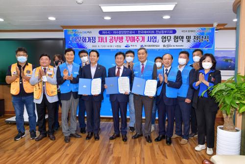 Á¤±â¸í ¿©¼ö½ÃÀåÀº ¡°Áö³ÇØ¿¡ ÀÌ¾î µÎ ¹øÂ° ¾÷¹«Çù¾àÀ¸·Î ±â»Ýµµ º¸¶÷µµ µÎ ¹è°¡ µÇ´Â °Í °°´Ù¡±¸é¼ ¡°¿©¼ö±¤¾çÇ׸¸°ø»ç¿Í ¿µµ¿ÀÌ¿£¾¾ÀÇ ¾Æ³¦¾ø´Â ÈÄ¿ø°ú Çѱ¹ÇغñŸƮ Àü³²µ¿ºÎÁöȸÀÇ ¿Á¤ ³ÑÄ¡´Â ºÀ»ç¿¡ ±íÀÌ °¨»çµå¸°´Ù¡±°í ¸»Çß´Ù.