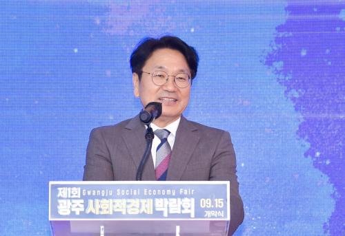 ° ½ÃÀåÀº ȯ¿µ»ç¿¡¼ ¡°±×µ¿¾È »çȸÀû°¡Ä¡ ½ÇÇöÀ» À§ÇØ ¸¹Àº ºÐµéÀÌ ³ë·ÂÇÑ °á°ú ±¤ÁÖ¿¡¼ óÀ½À¸·Î »çȸÀû°æÁ¦¹Ú¶÷ȸ°¡ ¿¸®°Ô µÆ´Ù¡±¸ç ¡°Àú¼ºÀå°ú ¾ç±ØÈ, ±âÈÄÀ§±â µî »çȸ¹®Á¦ÀÇ ´ë¾ÈÀÌÀÚ ÁÁÀº ÀÏÀÚ¸®¿Í Áö¼Ó°¡´ÉÇÑ ¹Ì·¡¸¦ À§ÇÑ ÇØ¹ýÀÎ »çȸÀû°æÁ¦ÀÇ °¡Ä¡°¡ »çȸ Àü¹Ý¿¡ È®»êÇÏ±æ ¹Ù¶õ´Ù¡±°í ¸»Çß´Ù.