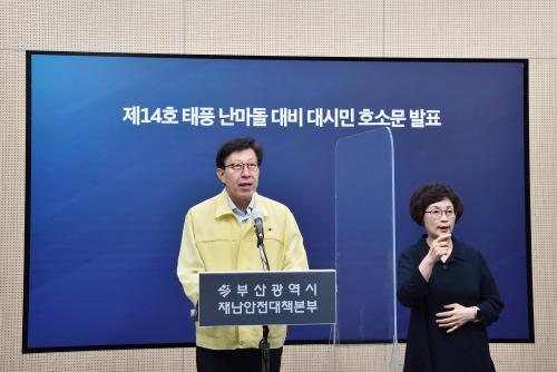 ±×·¯¸é¼ ¡°¿ì¸®ÀÇ ¼ÒÁßÇÑ Àθí°ú Àç»êÀ» Áö۱â À§ÇØ ºÎ»ê½Ãµµ ±¸․±º°ú ¹Î․°ü․±ºÀÇ ¸ðµç ¿ª·®À» Ãѵ¿¿øÇØ ÅÂdz¿¡ ´ëºñÇϰڴ١±°í °Á¶Çϰí, ¡°ÅÂdzÀÌ °¡Àå ±ÙÁ¢ÇÏ´Â ³»ÀÏ »õº®ºÎÅÍ ÅÂdzÀÇ ¿µÇâÀ¸·ÎºÎÅÍ ¿ÏÀüÈ÷ ¹þ¾î³ª´Â ³»ÀÏ ¿ÀÀü Áß¿¡´Â ¾ÈÀüÇÑ °÷¿¡ ¸Ó¹«¸£¸ç ½Ã¹Î Çൿ ¿ä·ÉÀ» Àß µû¶ó Áֽñ⸦ ´çºÎµå¸°´Ù¡±¸ç ½Ã¹Îµé²²¼ Èû°ú ÁöÇý¸¦ ¸ð¾ÆÁֽñ⸦ °£°îÈ÷ È£¼ÒÇÏ¿´´Ù.