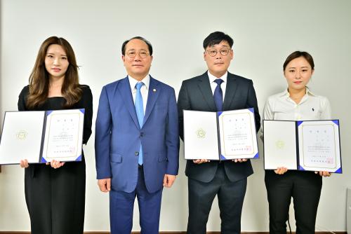À̳¯ ÀÓ¿ë½ÄÀº ÀÇÀå½Ç¿¡¼ ÀÓ¿ë ´ë»óÀÚ 3¸í°ú ¹®Â÷º¹ ÀÇÀå, ÀÇȸ»ç¹«±¹ Á÷¿øµéÀÌ Âü¼®ÇÑ °¡¿îµ¥ ȱâ¾Ö¾ÖÇÑ ºÐÀ§±â ¼Ó¿¡¼ ÁøÇàµÆ´Ù.