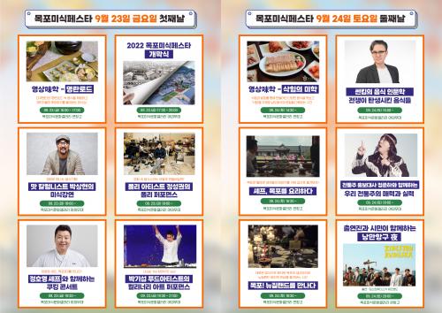 24ÀÏ¿¡´Â ¿ÀÈÄ 2½ÃºÎÅÍ ÇÁ·Î±×·¥ÀÌ ½ÃÀ۵Ǵµ¥ 8¸íÀÇ ¸ñÆ÷ À½½Ä ¸íÀÎÀÇ ¡®¸ñÆ÷ ¸À À̾߱⡯·Î ¹®À» ¿¬ µÚ MBC ƯÁý´ÙÅ¥ ¡®»èÈûÀÇ ¹ÌÇС¯ »ó¿µ°ú »èÈû¡¤¹ßÈ¿ À½½Ä üÇè, ¿ª»ç ½ºÅ丮ÅÚ·¯ ½ãÅ´ÀÇ À½½ÄÀι®ÇаÀÇ ¡®ÀüÀïÀÌ Åº»ý½ÃŲ À½½Äµé¡¯, ¡®¸ñÆ÷·Î µ¹¾Æ¿Â û³â¼ÎÇÁ¡¯ ÅäÅ©¼î°¡ ÁøÇàµÈ´Ù.