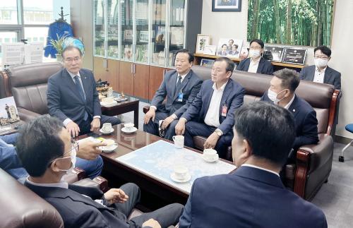 À̹ø ¹æ¹®¿¡´Â À̺´³ë ´ã¾ç±º¼ö¸¦ ºñ·ÔÇØ Ãֿ븸 ´ã¾ç±ºÀÇȸ ÀÇÀåÀÌ µ¿ÇàÇßÀ¸¸ç, ´ã¾ç Ãâ½Å À̰³È£ ±¹È¸ÀÇ¿øÀ» ºñ·ÔÇÑ Á¶¿À¼·, À±¿µ´ö, °í¿ëÁø ÀÇ¿ø°ú À̼º¹é Àç°æÇâ¿ìȸÀå µî 8¸íÀÇ Çâ¿ì¿Í ¸¸³ª Àç°æÇâ¿ìȸ Çâ¿ì ½°ÅÍ Á¶¼º °ü·Ã Çö¾È¹®Á¦µµ ³íÀÇÇß´Ù.