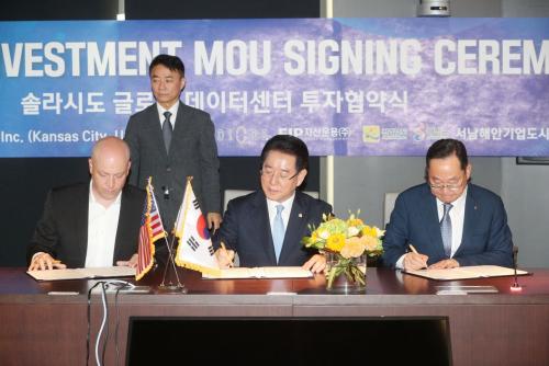 ¸íÇö°ü ±º¼ö´Â¡°¼Ö¶ó½Ãµµ ±â¾÷µµ½Ã´Â ÅõÀڸŷÂÀÌ ³ÑÄ¡´Â °÷À¸·Î À̹ø Á¤ºÎÀÇ Åº¼ÒÁ߸³ Ŭ·¯½ºÅÍ¿Í Ä£È¯°æ Àç»ý¿¡³ÊÁö »ê¾÷´ÜÁö ¹× ¹ßÀü´ÜÁö Á¶¼º°èȹµµ ±¹Á¤°úÁ¦·Î äÅõǴ µî ¹«ÇÑÇÑ ¹ßÀü°¡´É¼ºÀÌ ÀáÀçµÇ¾î ÀÖ´Ù¡±¸ç ¡°À̹ø ÅõÀÚÇù¾àÀ» ÅëÇØ Àü³²ÀÌ ±Û·Î¹ú µ¥ÀÌÅÍ »ê¾÷ÀÇ ¼±µÎÁÖÀÚ·Î ÀÚ¸®¸Å±èÇÏ´Â °è±â°¡ µÇ±â¸¦ Èñ¸ÁÇϸç, ¼º°øÀû ÃßÁøÀ» À§ÇØ ÇØ³²±º¿¡¼µµ Àû±Ø Áö¿øÀ» ¾Æ³¢Áö ¾Ê°Ú´Ù¡±°í ¹àÇû´Ù.