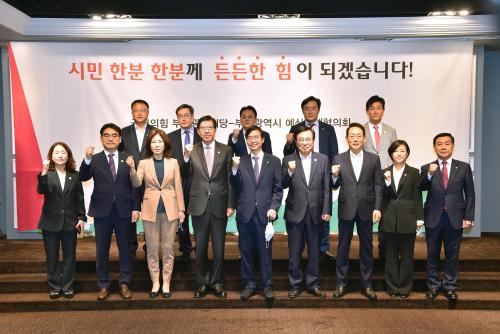 ¿À´Ã ÇùÀÇȸ¿¡ ºÎ»ê½Ã¿¡¼´Â ¹ÚÇüÁØ ½ÃÀåÀ» ºñ·ÔÇØ °æÁ¦ºÎ½ÃÀå, °æÁ¦Æ¯º¸, Á¤Ã¥¼ö¼®, ÁÖ¿ä ½Ç‧±¹‧º»ºÎÀåÀÌ Âü¼®ÇÏ¸é¼ ¿ª´ë ÃÖ´ë ±Ô¸ð ±¹ºñ È®º¸¸¦ ¸ñÇ¥Çϰí ÀÖ´Â ºÎ»ê½ÃÀÇ °ÇÑ ÀÇÁö¸¦ µå·¯³ÂÀ¸¸ç, ±¹¹ÎÀÇÈû ºÎ»ê½Ã´ç¿¡¼´Â Á¶°æÅ ½Ã´çÀ§¿øÀåÀ» ºñ·ÔÇÑ ºÎ»êÁö¿ª ±¹È¸ÀÇ¿øÀÌ Âü¼®ÇÏ¸é¼ ºÎ»ê½ÃÀÇ ³»³âµµ ±¹ºñ È®º¸ ³ë·Â¿¡ Àû±Ø ÈûÀ» º¸Å°ڴٴ ¶æÀ» ³»º¸¿´´Ù.