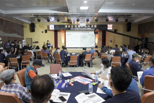 À̳¯ Æ÷·³¿¡ Âü¼®ÇÑ ½Ã¹ÎÀº ¡°°æÀü¼± µµ½É Åë°ú´Â ¼øÃµÀÌ ÁöÄѳ½ »ýŵµ½Ã °¡Ä¡°¡ ÈѼյǴ ¼øÃµ 700³â ¿ª»ç»ó ÃÖ´ëÀÇ »ç°Ç¡±À̶ó°í ¸»ÇßÀ¸¸ç, ¶Ç ´Ù¸¥ ½Ã¹ÎÀº ¡°100³â Àü ¼³Ä¡ÇÑ Ã¶µµ´Â Áö¿ª ¼ºÀåÀÇ ¿øµ¿·ÂÀÌ µÇ¾úÀ¸³ª Áö±Ý °æÀü¼±Àº ¼øÃµ ¹ßÀüÀ» ÀúÇØÇÏ´Â ¿ä¼Ò°¡ µÇ°í ÀÖ´Ù¸é °æÀü¼± Àüöȿ¡ µû¸¥ ½Ã¹Î´ëÃ¥À§¸¦ ±¸¼ºÇÏ¿© ½Ã¹Î°ú Àü¹®°¡, ±×¸®°í Áö¿ª Á¤Ä¡ÀÎÀÌ ÇÔ²² ´ëÀÀÇØ ³ª°¡ÀÚ.¡±¶ó°í Çß´Ù.
