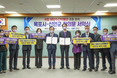 ¹ÚÈ«·ü ¸ñÆ÷½ÃÀå°ú ¹Ú¿ì·® ½Å¾È±º¼ö´Â 29ÀÏ ¸ñÆ÷½Ãû¿¡¼ ¡®±¹¸³Çؾç¼ö»ê¹Ú¹°°ü ¸ñÆ÷½Ã-¸ñÆ÷½Ã ½Å¾È±º °øµ¿ À¯Ä¡ ÇÕÀǹ®¡¯ ¼¾à½ÄÀ» °¡Á³´Ù.