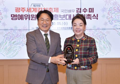 °±âÁ¤ ½ÃÀåÀº ¡°¸í¿¹À§¿øÀå ¹× È«º¸´ë»ç¸¦ ¼ö¶ôÇÑ ¹è¿ì ±è¼ö¹Ì ¾¾²² °¨»çµå¸°´Ù¡±¸ç ¡°±èÄ¡¸¦ ±¤ÁÖ ´ëÇ¥ ÄÜÅÙÃ÷·Î Ű¿ì°í ±èÄ¡ÃàÁ¦¸¦ ¼¼°èÀûÀÎ ÃàÁ¦·Î Ű¿ï ¼ö ÀÖµµ·Ï ³ë·ÂÇϰڴ١±°í ¸»Çß´Ù.