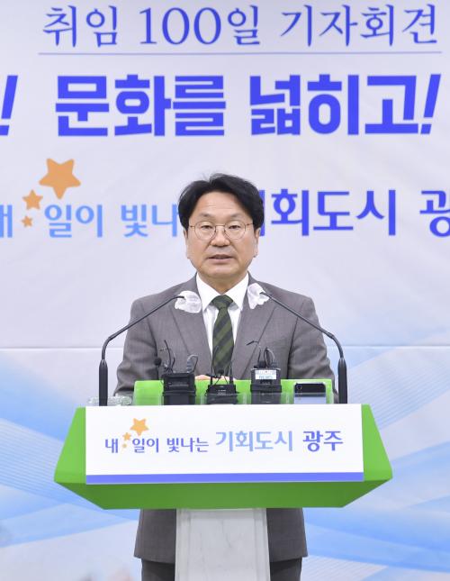 ° ½ÃÀåÀº 6ÀÏ ¿ÀÀü ½Ãû ºê¸®Çη뿡¼ ¹Î¼± 8±â ÃëÀÓ 100ÀÏ ±âÀÚȸ°ßÀ» ¿°í ¡°Áö³ 100ÀÏÀº ³»¡ÙÀÏÀÌ ºû³ª´Â ±âȸµµ½Ã ±¤ÁÖ·Î ³ª¾Æ°¡±â À§ÇÑ ¼³°èµµ¸¦ ¸¸µé°í ¿£ÁøÀ» ÀåÂøÇÏ´Â ½Ã±â¿´´Ù¡±¸ç À̰°ÀÌ ¸»Çß´Ù.
