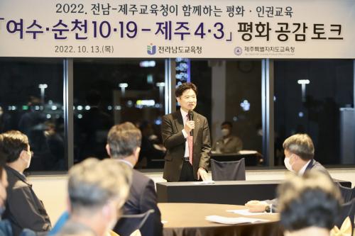 ±è±¤¼ö Á¦ÁÖ±³À°°¨Àº °ø°¨ÅäÅ©¿¡¼ ¡°¿©¼ø10¡¤19¿Í Á¦ÁÖ4¡¤3ÀÇ ÆòÈ¿Í ÀαÇÀÇ ¼ÒÁßÇÔÀ» ¾Ë¸®´Â Àο¬ÀÌ °è¼Ó À̾îÁö±â¸¦ ¹Ù¶õ´Ù.¡±°í ¸»Çß´Ù.