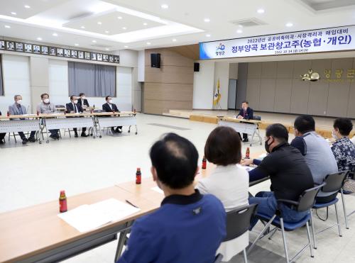 ¾ÕÀ¸·Î 2022³â»ê °ø°øºñÃà¹Ì°î 8,031Åæ, º Àç¹è °¨ÃàºÐ 307Åæ, ½ÃÀå°Ý¸®°î 6,062Åæ µî ÃÑ 14,400Åæ°ú 2021³â»ê 4Â÷ ½ÃÀå°Ý¸®°î ³«Âû ¿¹»ó¹°·® 2,500ÅæÀ» ¸ÅÀÔ Á¤ºÎ¾ç°î º¸°üâ°í¿¡ ÀÔ°íÇÏ¿© °ü¸®ÇÒ °èȹÀÌ´Ù.