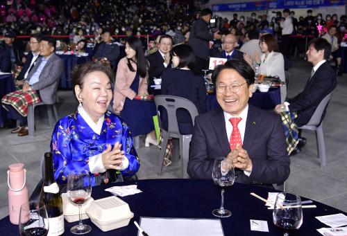 °±âÁ¤ ±¤ÁÖ±¤¿ª½ÃÀåÀÌ Áö³ 20ÀÏ ¿ÀÈÄ ¼±¸ ±¤ÁÖ±èġŸ¿î¿¡¼ ¿¸° 'Á¦29ȸ ±¤ÁÖ¼¼°è±èÄ¡ÃàÁ¦ °³¸·½Ä'¿¡ Âü¼®ÇØ È«º¸´ë»çÀÎ ¹è¿ì ±è¼ö¹Ì ¾¾¿Í ±èÄ¡µð³Ê¼î °ø¿¬À» °ü¶÷ÇÏ¸ç ¹Ú¼ö¸¦ Ä¡°í ÀÖ´Ù.