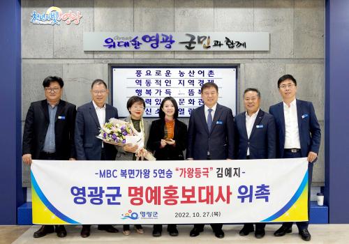 ¿µ±¤±º(±º¼ö °Á¾¸¸)Àº Áö³ 27ÀÏ ¿µ±¤±ºÃ»¿¡¼ º¹¸é°¡¿Õ 5¿¬½Â¿¡ ºû³ª´Â ±è¿¹Áö¸¦ ¿µ±¤±º ¸í¿¹È«º¸´ë»ç·Î ÀÓ¸íÇß´Ù.
