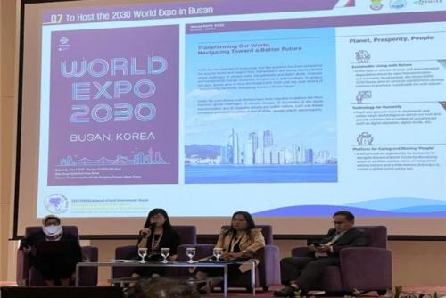 ¾Æ¿ï·¯, ½Ã´Â ±¹Á¦Çà»ç Âü¼®À» °è±â·Î ÇÑ 2030ºÎ»ê¼¼°è¹Ú¶÷ȸ À¯Ä¡ È«º¸µµ ÀØÁö ¾Ê¾Ò´Ù. Æ÷·³ ÀÌÈÄ ÁøÇàµÈ °ø½Ä ¸¸ÂùÇà»ç¿¡¼ 2030ºÎ»ê¼¼°è¹Ú¶÷ȸ È«º¸¿µ»óÀ» »ó¿µÇÏ¸é¼ Âü¼®ÀÚ¿Í È¸¿ø µµ½ÃÀÇ Àû±ØÀûÀÎ ÁöÁö¸¦ ¿äûÇß´Ù.