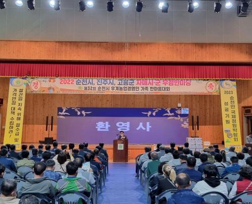 ¼ÕÁ¡½Ä ¼øÃµ½ÃºÎ½ÃÀåÀº ȯ¿µ»ç¿¡¼ ¡°Çѱ¹Èİè³ó¾÷°æ¿µÀÎ °¡Á· ¿©·¯ºÐÀÌ ¾î·Á¿î ¿©°Ç°ú À§±â ¼Ó¿¡¼µµ ²à²àÀÌ ³óÃÌÀ» ÁöŰ°í ³ó¾÷ ¹ßÀüÀ» À§ÇØ ³ë·ÂÇØ ¿Â ¸¸Å ¾ÕÀ¸·Î ¼øÃµ½Ã´Â Áö¼Ó °¡´ÉÇÑ ¹ßÀüÀ» °¡Á®¿Ã ¼ö ÀÖ´Â ³ó¾÷, »ì°í ½ÍÀº ³óÃÌÀÌ ¸¸µé¾îÁöµµ·Ï ÇöÀå¿¡ °è½Å ³ó¾÷ÀÎ ¿©·¯ºÐÀÇ À̾߱⿡ ±Í ±â¿ïÀ̰ڴÙ.¡±¶ó°í ¸»Çß´Ù.