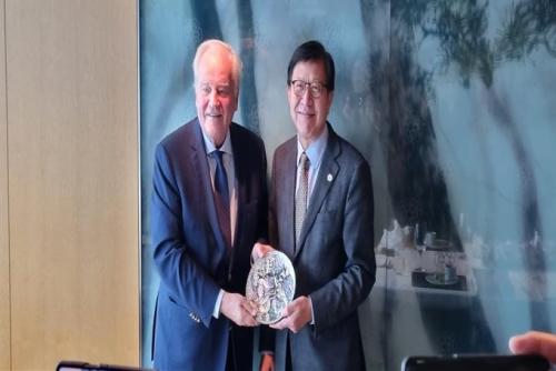 ¹ÚÇüÁØ ºÎ»ê½ÃÀå°ú ±øºÀ À§¿øÀåÀÇ ¸¸³²Àº Áö³ÇØ 6¿ù ÇÁ¶û½º ÆÄ¸®¿¡¼ ¿¸° ±¹Á¦¹Ú¶÷ȸ±â±¸(BIE) ÃÑȸ¸¦ °è±â·Î ¸¸³ ÀÌÈÄ µÎ ¹øÂ°´Ù.