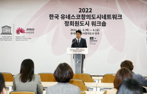 ÀüÁÖ½Ã¿Í À¯³×½ºÄÚ Çѱ¹À§¿øÈ¸´Â ù³¯ ±¹¸³¹«ÇüÀ¯»ê¿ø ±¹Á¦È¸ÀÇÀå¿¡¼ ¡®2022 Çѱ¹ À¯³×½ºÄÚ Ã¢Àǵµ½Ã³×Æ®¿öÅ© Á¤È¸¿øµµ½Ã ¿öÅ©¼ó¡¯À» °³ÃÖÇß´Ù.