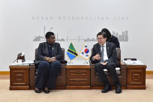¹Ú ½ÃÀåÀº ¹Ù»Û ÀÏÁ¤ ¿ÍÁß¿¡ ºÎ»êÀ» ¹æ¹®ÇØ ÁØ ¸¶ºÒ¶ó Àå°üÀ» ȯ¿µÇϸç, ¡°Áö³ 4¿ù ºÎ»êÀ» ¹æ¹®ÇÑ ¹°¶ó¹°¶ó źÀÚ´Ï¾Æ ¿Ü±³Àå°ü°úÀÇ ¸é´ã¿¡¼µµ ºÎ»ê°ú źÀÚ´Ï¾Æ °£ ´Ù¾çÇÑ Çù·Â ºÐ¾ß¸¦ ³íÀÇÇÑ ¹Ù ÀÖ´Ù¡±°í ±×°£ÀÇ ±³·ù¡¤Çù·Â°ü°è¸¦ °Á¶Çß´Ù.