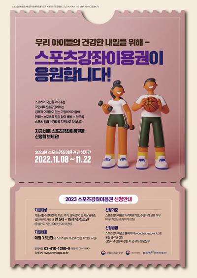 2023³âµµ ½ºÆ÷Ã÷°ÁÂÀÌ¿ë±Ç Áö¿ø´ë»óÀÚ´Â ±âÃÊ»ýȰ¼ö±Þ°¡±¸, Â÷»óÀ§°èÃþ, ¹ýÁ¤ ÇѺθð Áö¿ø°¡Á· ¸¸ 5~18¼¼ À¯¡¤Ã»¼Ò³âÀ̸ç, Àå¾ÖÀÎ ½ºÆ÷Ã÷°ÁÂÀÌ¿ë±Ç Áö¿ø´ë»óÀÚ´Â ¸¸19~64¼¼ µî·Ï Àå¾ÖÀÎÀÌ´Ù.