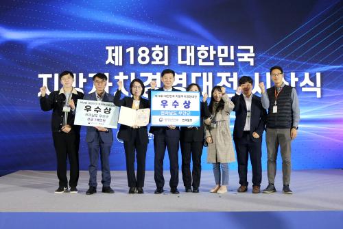 ÇÑÆí ÇàÁ¤¾ÈÀüºÎ¿Í Çѱ¹ÀϺ¸°¡ °øµ¿ ÁÖÃÖÇØ ¿ÃÇØ 18ȸ°¸¦ ¸ÂÀÌÇÑ ´ëÇѹα¹ Áö¹æÀÚÄ¡°æ¿µ´ëÀüÀº ÁöÀÚüÀÇ Ã¢ÀÇ Á¤Ã¥°ú Â÷º°ÈµÈ ¹ßÀü Àü·«À» °ßÁÖ´Â Á¤Ã¥ °æ¿¬ ¸¶´çÀ¸·Î ¿ÃÇØ´Â 7°³ ºÎ¹® 9°³ ºÐ¾ß¿¡¼ 30°³ ±â°üÀ» ¿ì¼ö±â°üÀ¸·Î ¼±Á¤ÇßÀ¸¸ç, ½Ã»ó½ÄÀº 2022 ´ëÇѹα¹ Áö¹æÀÚÄ¡ °æ¿µÇõ½Å ¿¢½ºÆ÷ ³» Çà»ç·Î Áö³ 10ÀÏ °³¸·½Ä°ú ÇÔ²² ºÎ»ê º¤½ºÄÚ¿¡¼ °³ÃֵƴÙ.