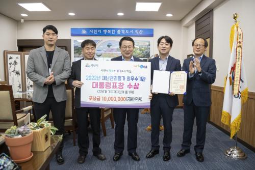 ½Ã´Â ÇàÁ¤¾ÈÀüºÎ ÁÖ°üÀ¸·Î 2022³âµµ Àç³°ü¸®Æò°¡¿¡¼ ±âÃÊÀÚÄ¡´Üü 226°³ ±â°ü Áß Àü±¹ 1À§·Î Æò°¡¹Þ¾Æ ÃÖ¿ì¼ö±â°üÀ¸·Î ¼±Á¤µÅ ´ëÅë·É ǥâ ¼ö»ó°ú ´õºÒ¾î Æ÷»ó±Ý õ¸¸¿øÀ» ¹Þ´Â´Ù
