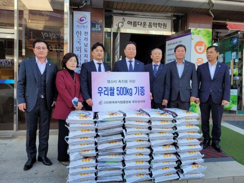 Çѱ¹¿Ü½Ä¾÷ ¹«¾È±ºÁöºÎ´Â ÁöºÎ»ç¹«½Ç ÀÌÀü °³¼Ò½Ä ±â³äÀ¸·Î ½Ò ¼ÒºñÃËÁø ¿îµ¿ µ¿ÂüÀÇ Àǹ̷Π½Ò 500kgÀ» ±âŹÇß´Ù.