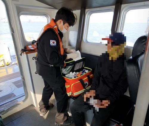 16ÀÏ ¸ñÆ÷ÇØ¾ç°æÂû¼(¼Àå ÀÌÁ¾¿í)¿¡ µû¸£¸é À̳¯ ¿ÀÀü 10½Ã 12ºÐ²² Áøµµ±º µ¶°Åµµ ³²ÂÊ 4.6km ÇØ»ó¿¡¼ ¿¬¾ÈÅë¹ß ¾î¼± AÈ£(9.77Åæ, ½Â¼±¿ø 8¸í)ÀÇ ¼±¿ø B¾¾(30´ë, ³²)°¡ Á¶¾÷ Áß Åõ¸ÁÇß´ø ÁÙ¿¡ ¼Õ°¡¶ôÀÌ ³¢¾î Àý´ÜµÆ´Ù´Â ½Å°í¸¦ Á¢¼öÇß´Ù.