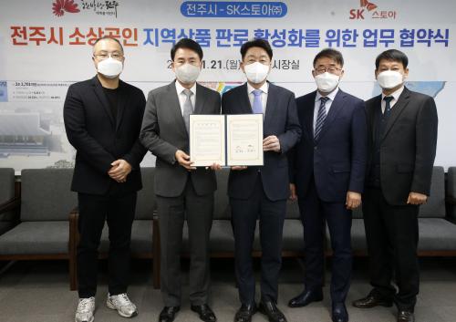 ÀüÁÖ½Ã¿Í SK½ºÅ侯´Â 21ÀÏ ÀüÁÖ½ÃÀå½Ç¿¡¼ ¿ì¹ü±â ÀüÁÖ½ÃÀå°ú À±¼®¾Ï SK½ºÅ侯 ´ëÇ¥ÀÌ»ç, ±èÇü¿í Çѱ¹TÄ¿¸Ó½ºÇùȸÀå µîÀÌ Âü¼®ÇÑ °¡¿îµ¥ ¡®¼Ò»ó°øÀÎ Áö¿ª»óǰ ÆÇ·Î Ȱ¼ºÈ¸¦ À§ÇÑ ¾÷¹«Çù¾à¡¯À» ü°áÇß´Ù.