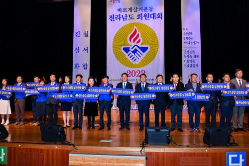 À̳¯ ´ëȸ¿¡ Âü¼®ÇÑ ±è¿µ·Ï Àü¶ó³²µµÁö»ç´Â ¾ÈÀü¹®È Á¤Âø°ú ¾Æ¸§´Ù¿î Àü³² ¸¸µé±â¿¡ ±â¿©ÇÑ ¿ì¼öȸ¿ø¿¡°Ô ǥâÀ» ¼ö¿©Çϰí, ȸ¿øµéÀÇ ºÀ»ç¿Í ³ë°í¿¡ °¨»çÀÇ ¸¶À½À» ÀüÇß´Ù.