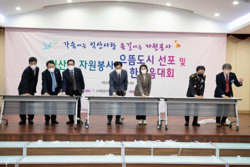 1ÀÏ ½Ã¿¡ µû¸£¸é ¡®ÀÚ¿øºÀ»ç À¸¶äµµ½Ã ¼±Æ÷½Ä ¹× ÀÚ¿øºÀ»çÀÚ ÇѸ¶À½´ëȸ¡¯°¡ Á¤ÇåÀ² ÀÍ»ê½ÃÀå°ú ÃÖÁ¾¿À ½ÃÀÇÀå, ¾ö¾ç¼· ÀÍ»ê½ÃÀÚ¿øºÀ»ç¼¾ÅÍÀÌ»çÀå ¹× À¯°ü±â°üÀå µîÀ» ºñ·ÔÇØ ÀÚ¿øºÀ»çÀÚ 200¿©¸íÀÌ Âü¿©ÇÑ °¡¿îµ¥ ¿ø±¤º¸°Ç´ëÇб³ WM°ü¿¡¼ °³ÃֵƴÙ.