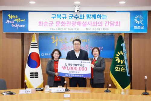 °£´ãȸ°¡ ³¡³ª°í Áö¿ªÀÎÀç À°¼ºÀ» À§ÇÑ ÀåÇÐ±Ý ±âʵµ À̾îÁ³´Ù. ¹®ÈÇØ¼³»çµéÀº Áö¿ª ÇлýµéÀÇ ²ÞÀ» ÀÌ·ç´Âµ¥ ½á ´Þ¶ó¸ç ÇѸ¶À½ ÇѶæÀ¸·Î ¸ðÀº Çö±Ý 100¸¸ ¿øÀ» (Àç)ȼøÀåÇÐȸ¿¡ ±âŹÇß´Ù.