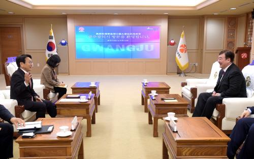 ½ÌÇÏÀÌ¹Ö ´ë»ç´Â Àü±¹¿¡ ¼³Ä¡µÈ 24°³ÀÇ °øÀÚÇпø ÃÑȸ¿¡ Âü¼®Çϱâ À§ÇØ ±¤ÁÖ¸¦ ã¾Æ À̳¯ óÀ½À¸·Î ±¤ÁÖ½ÃûÀ» ¹æ¹®Çß´Ù.