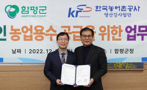 ¾ç ±â°üÀº Çù¾àÀ» ÅëÇØ ¿µ»ê°¥³Áö±¸ ´ë´ÜÀ§ ³ó¾÷°³¹ß»ç¾÷(5°ø±¸) ÇÔÆò±º ±¸¿ª ³» ¾ÈÁ¤ÀûÀÎ ³ó¾÷¿ë¼ö °ø±ÞÀ» À§ÇØ Àû±Ø Çù·ÂÇÒ °ÍÀ» ¾à¼ÓÇß´Ù.